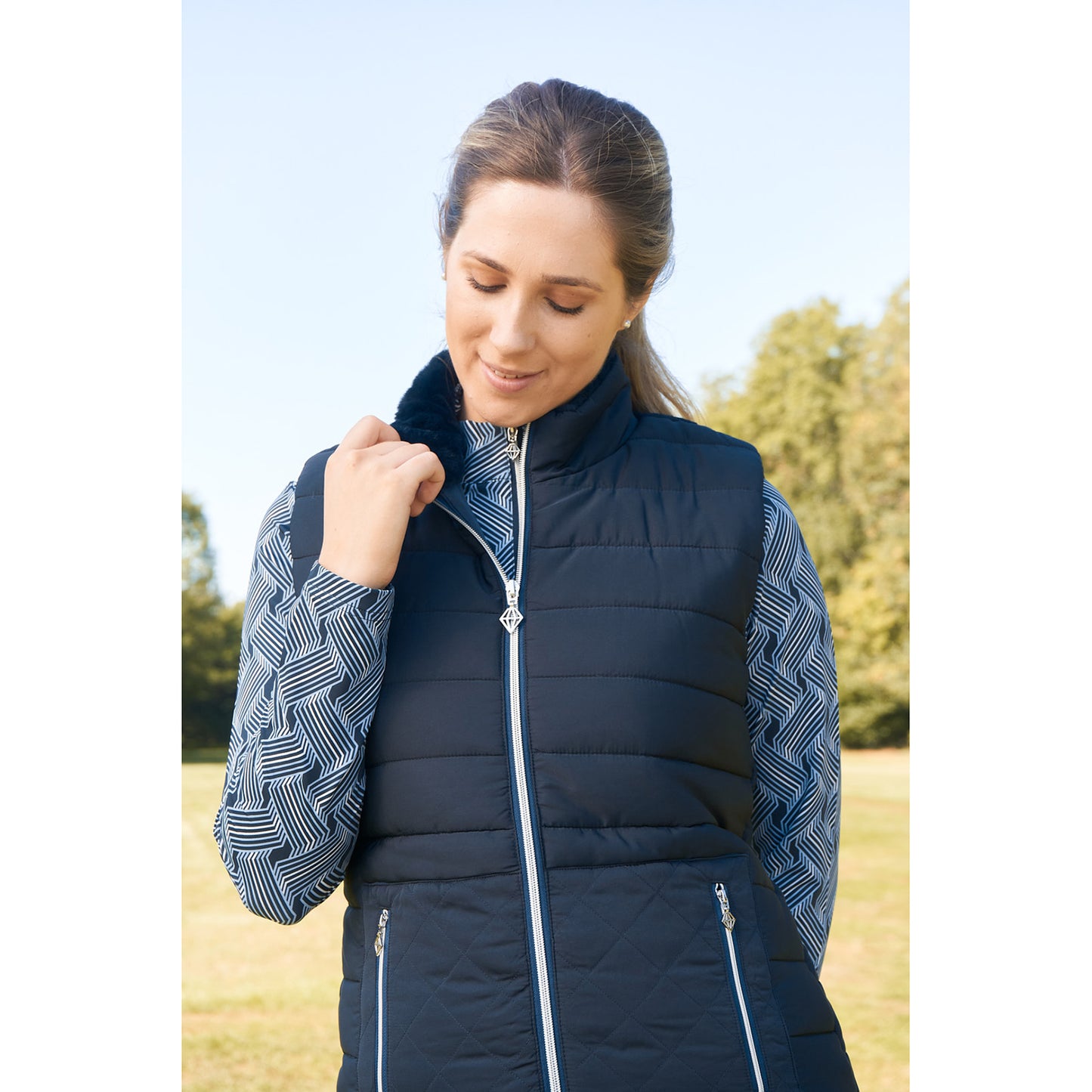 Pure Golf Ladies Gilet in Navy with Faux Fur Collar