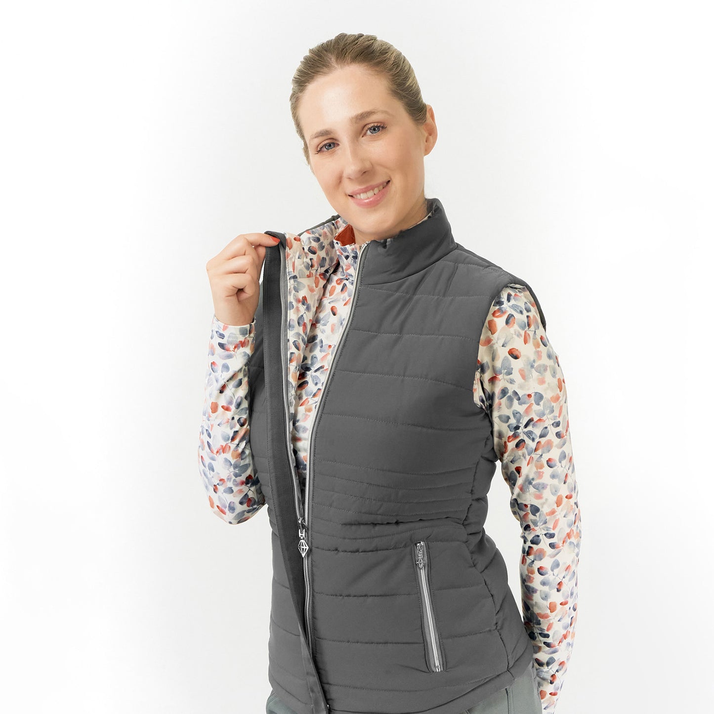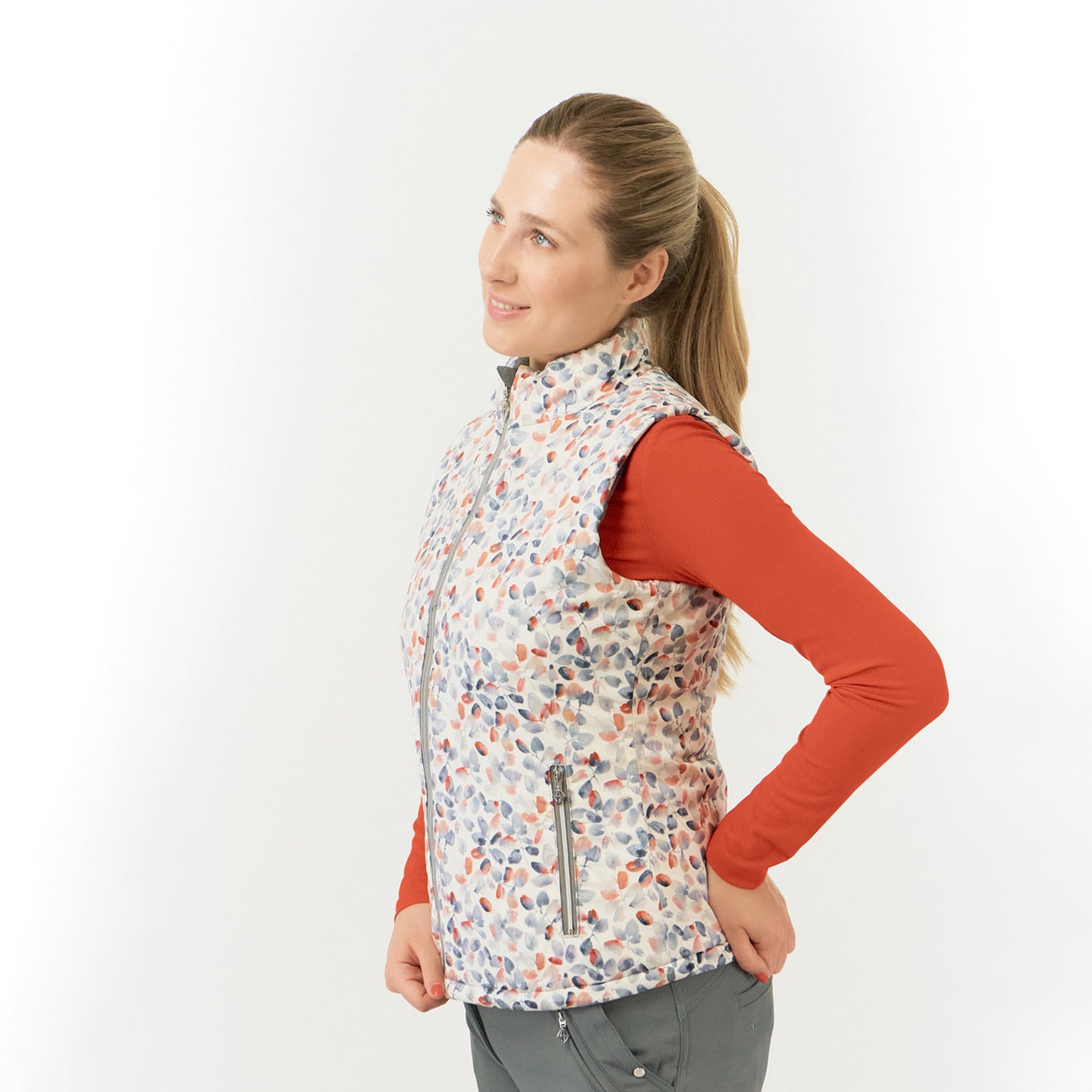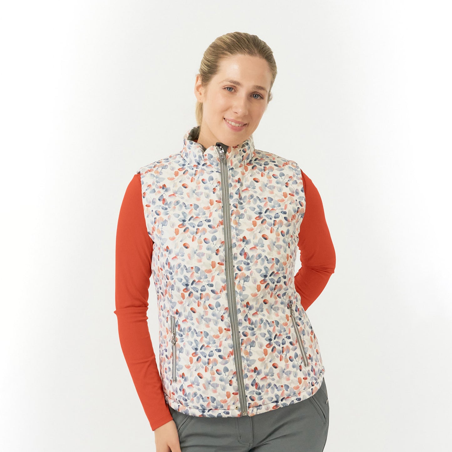 Pure Golf Ladies Reversible Gilet in Charcoal Grey & Autumn Embers