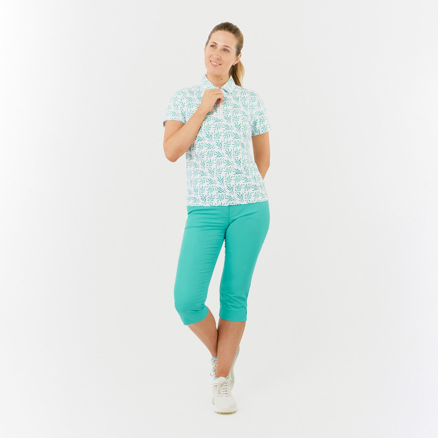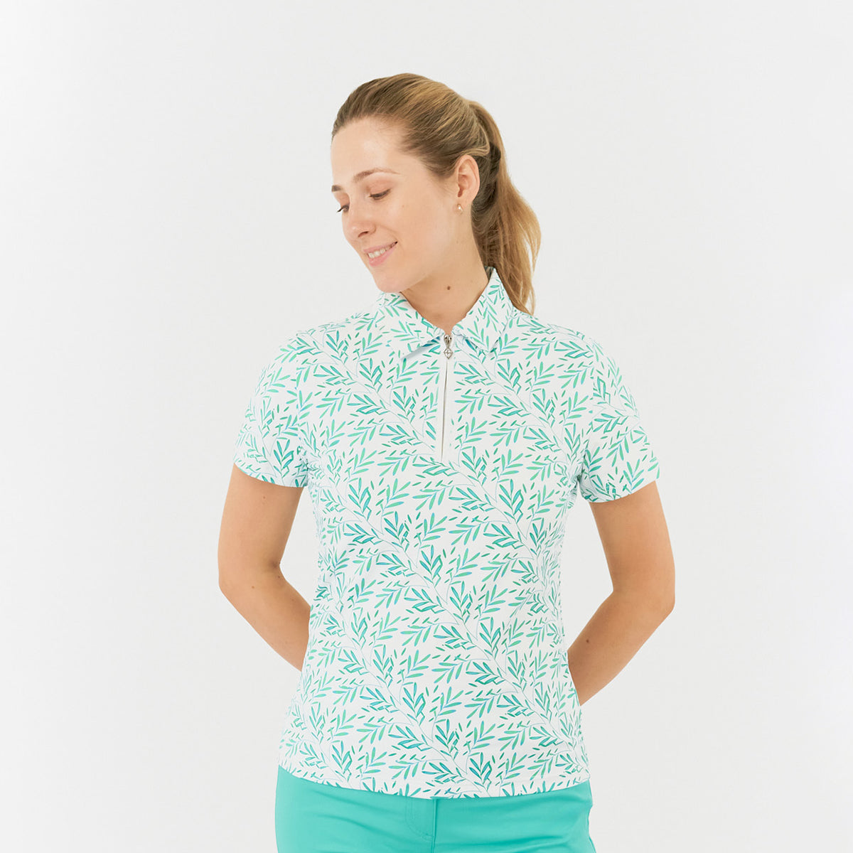 Pure Golf Ladies Short Sleeve Polo with Palm Print
