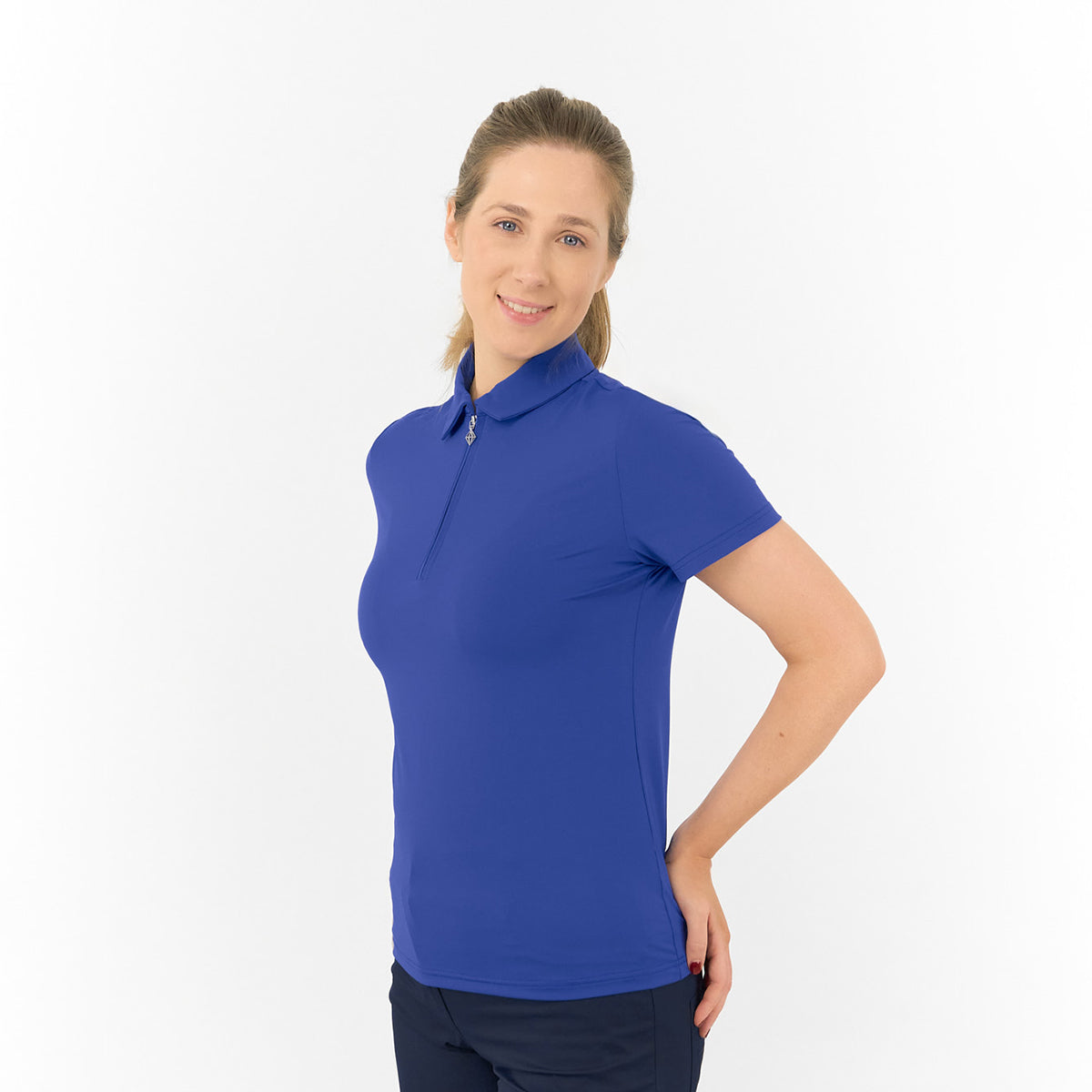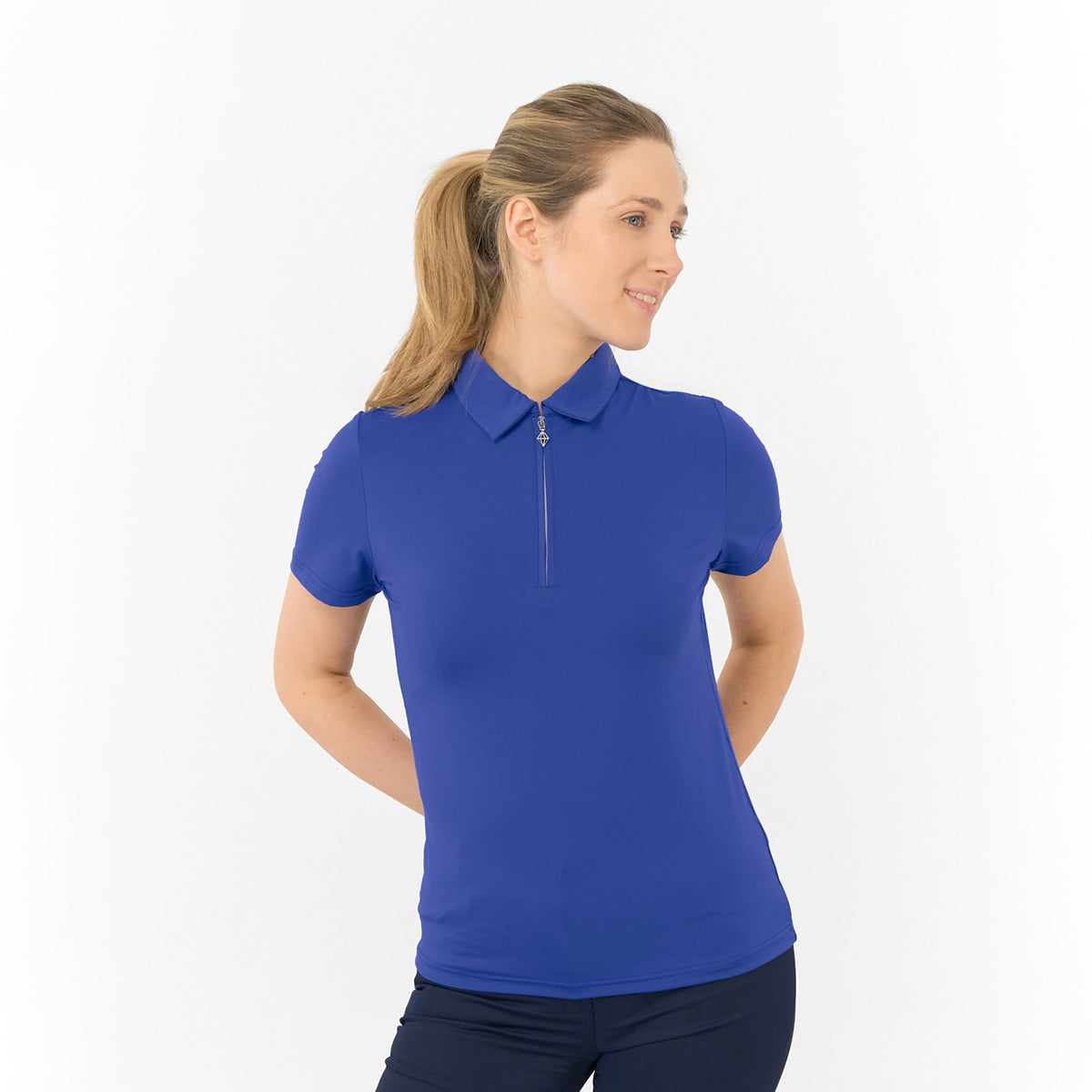 - 'Thrive' cap sleeve polo in 'Yale Navy'; a rich blue shade with a purple hue