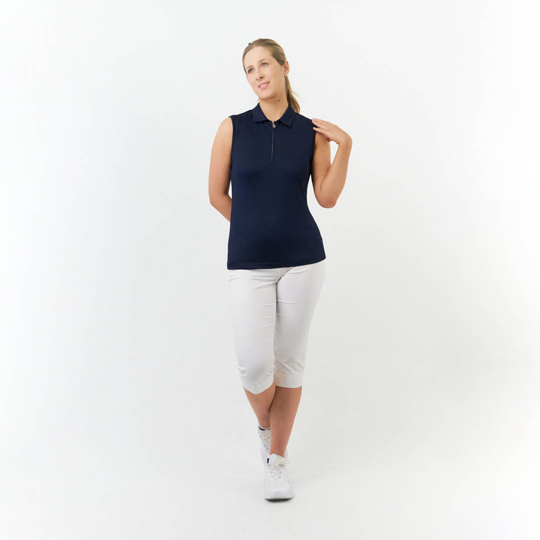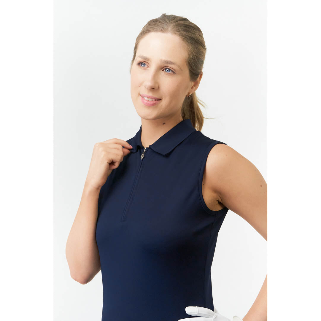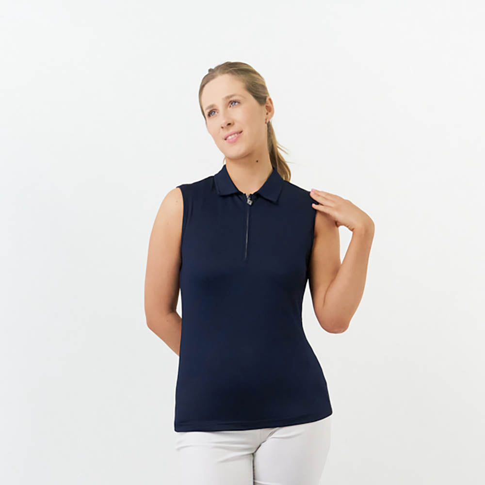 Pure Golf Ladies Silky Soft Sleeveless Polo in Navy