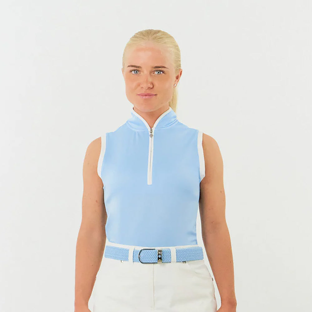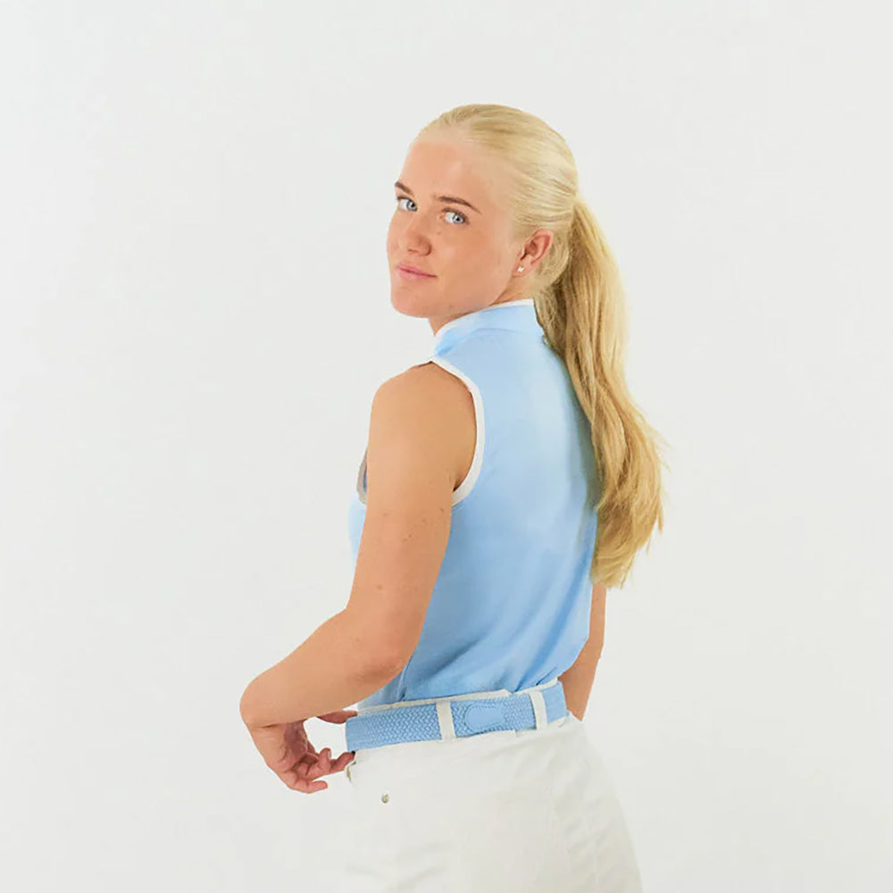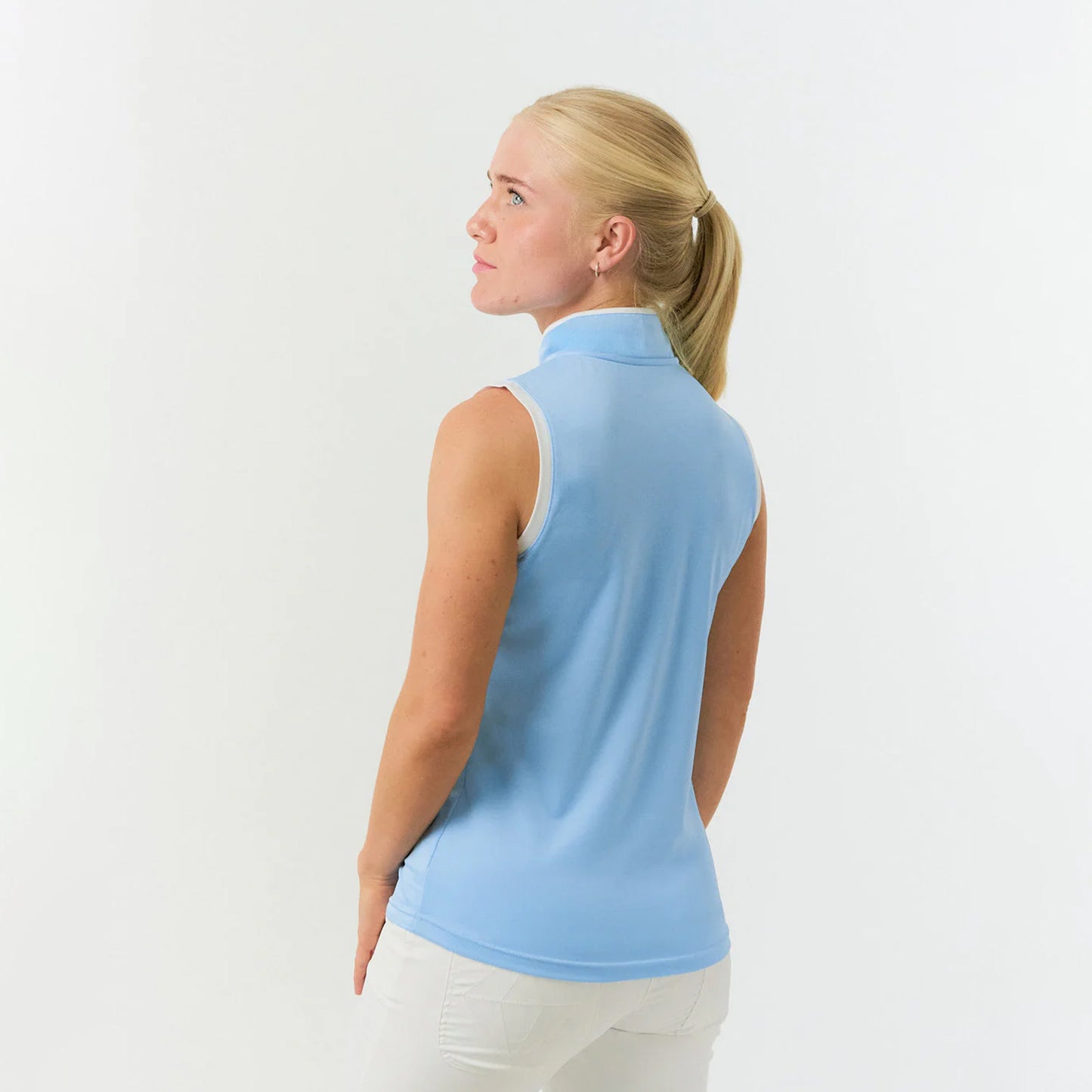 Pure Golf Ladies Sleeveless Mandarin Polo Shirt in Pale Blue