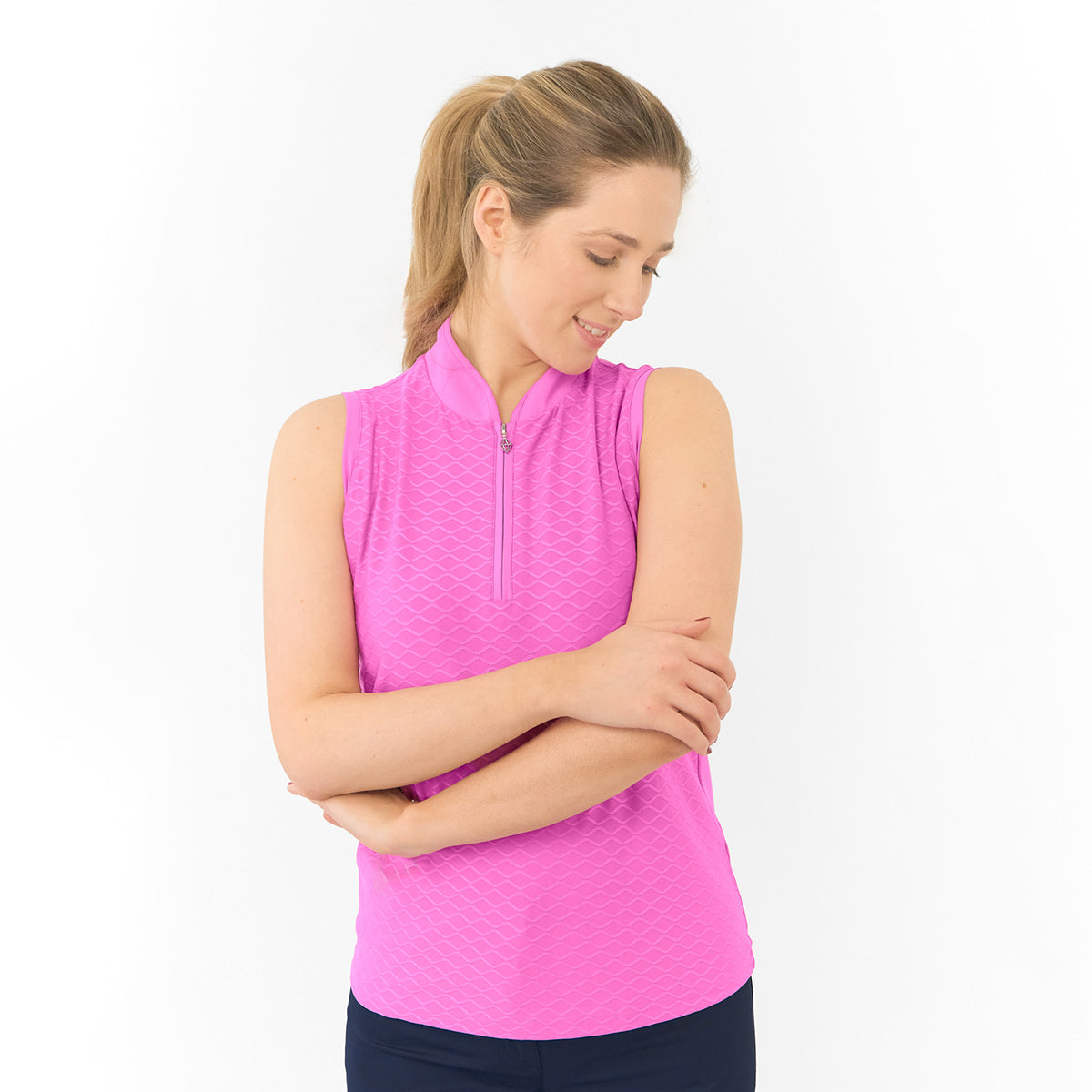 - 'Valley' sleeveless polo in 'Azalea Pink' with wave print
