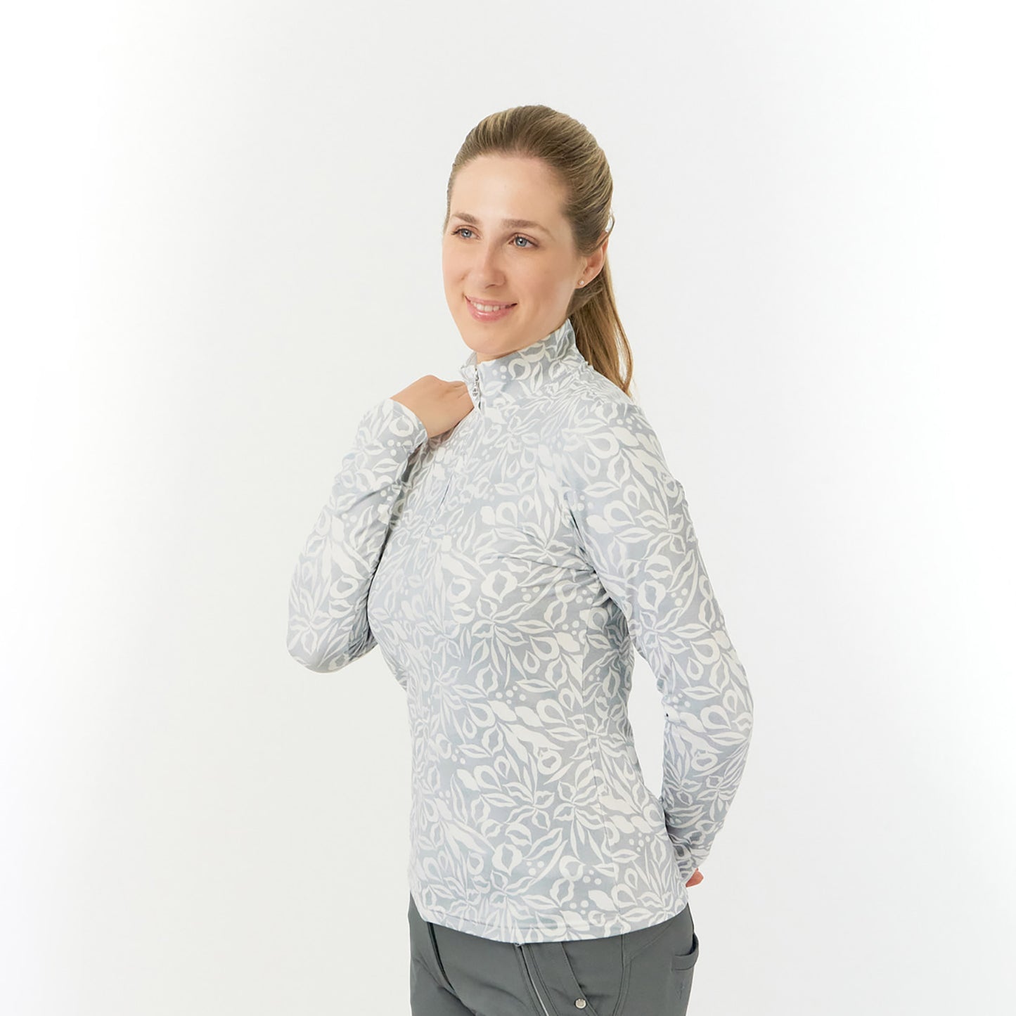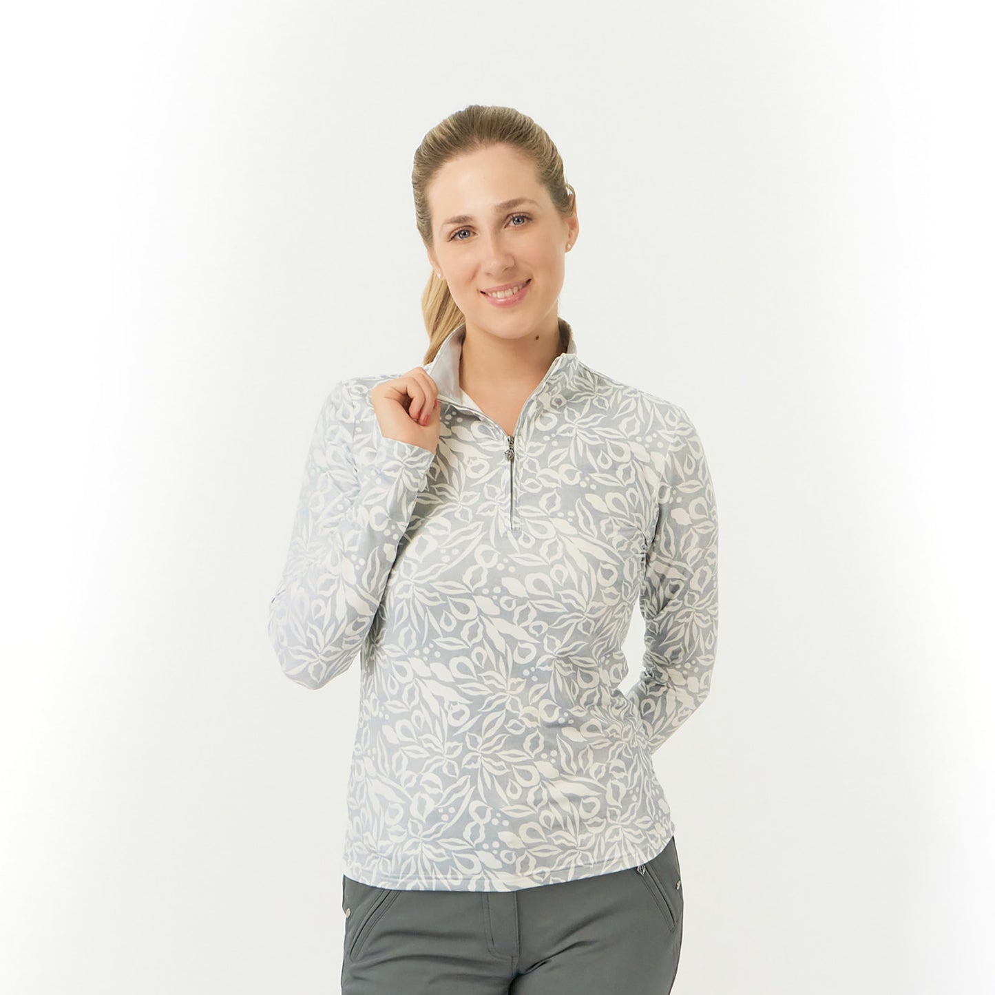 - 'Arusha' long sleeve zip neck top in 'Winter Foliage'