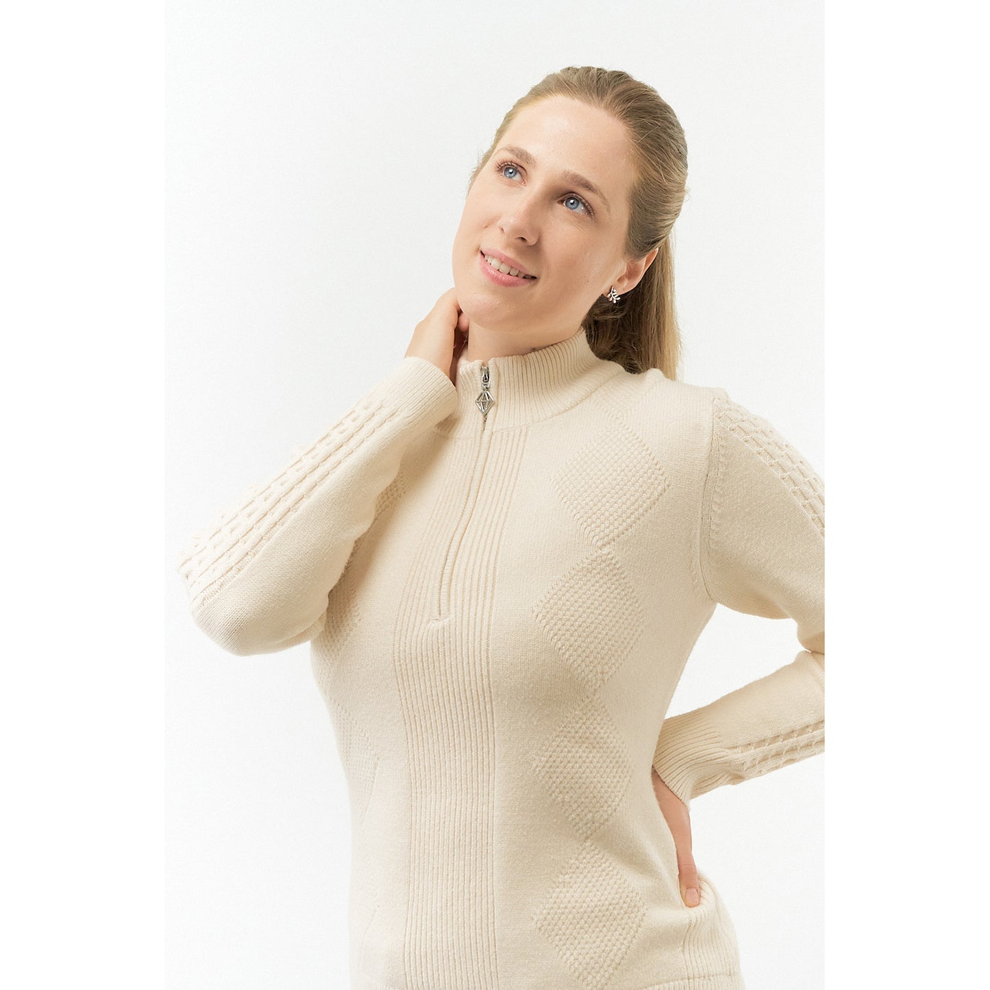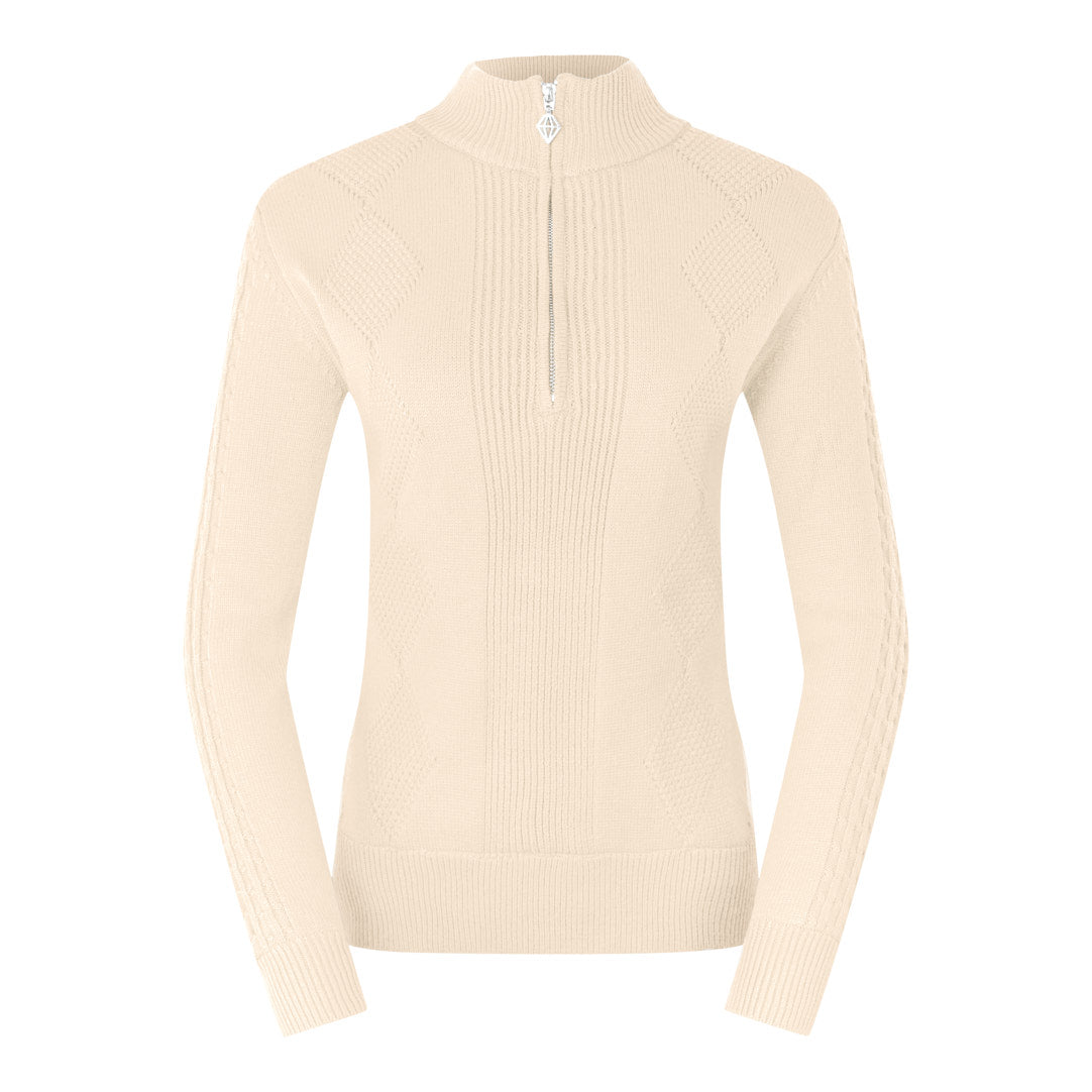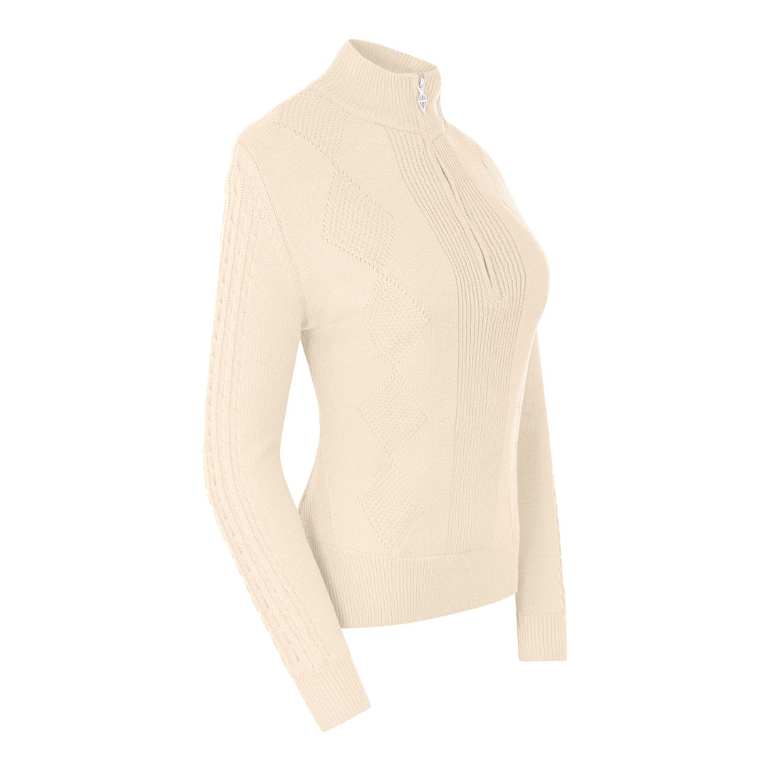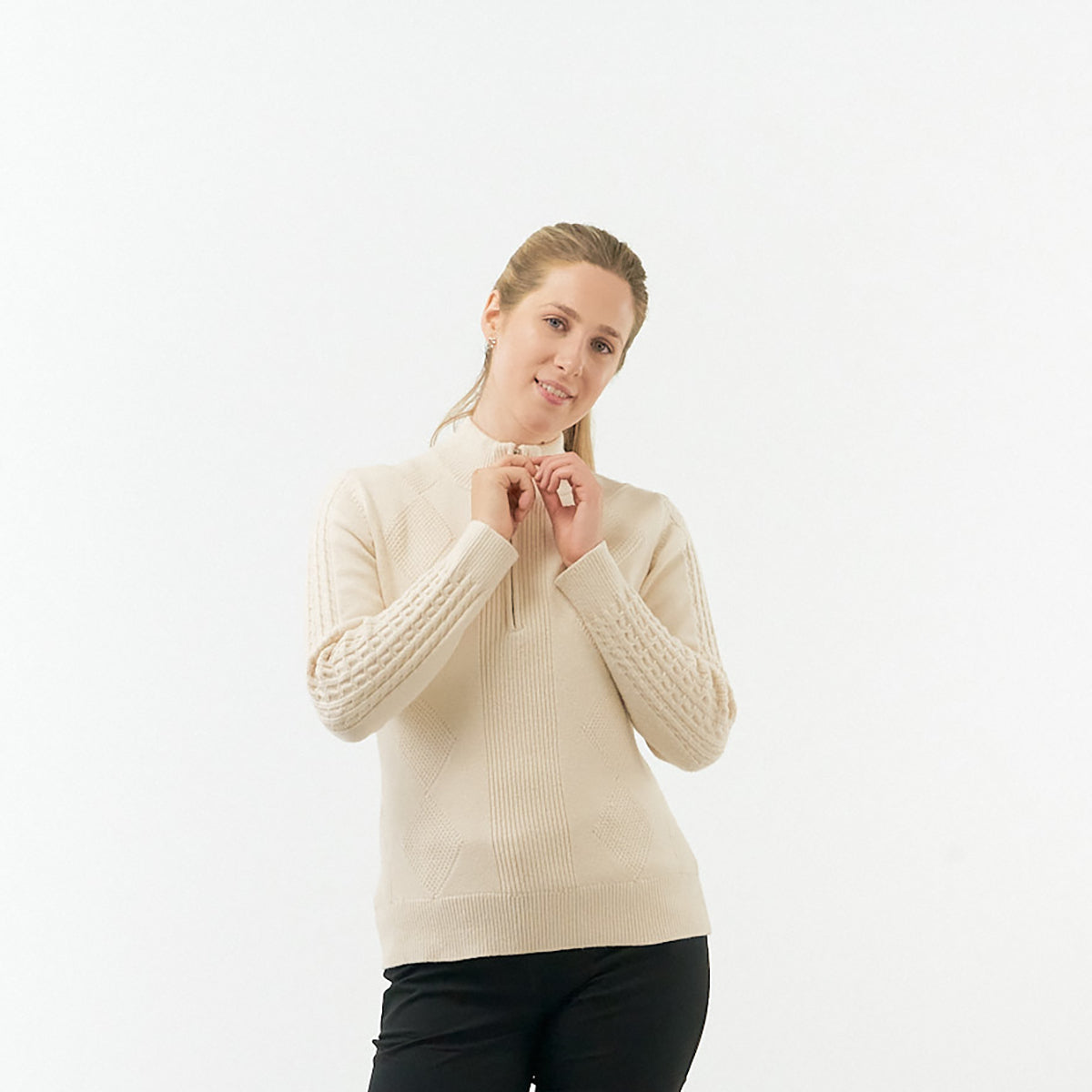 Pure Ladies Lined Zip-Neck Golf Sweater with Cable Knit Design