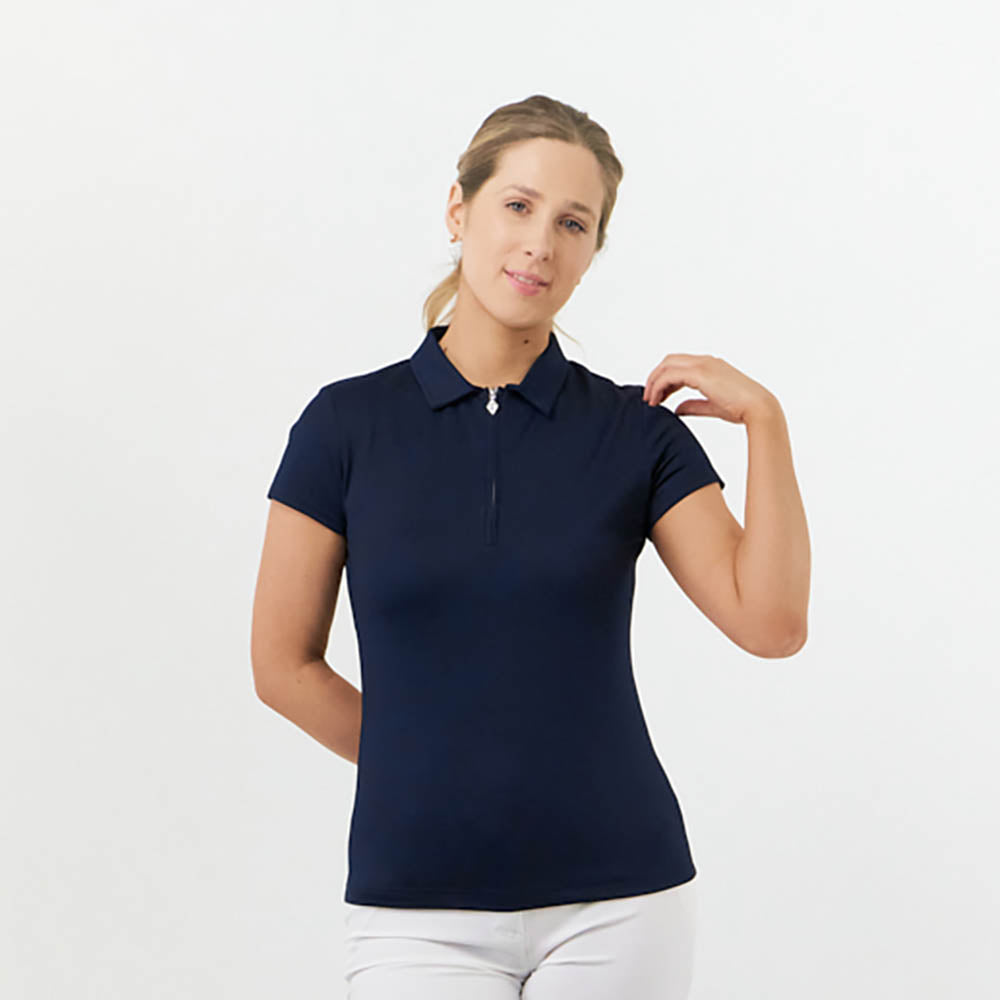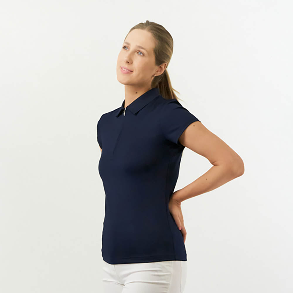 Pure Ladies Silky Soft Cap Sleeve Polo in Navy
