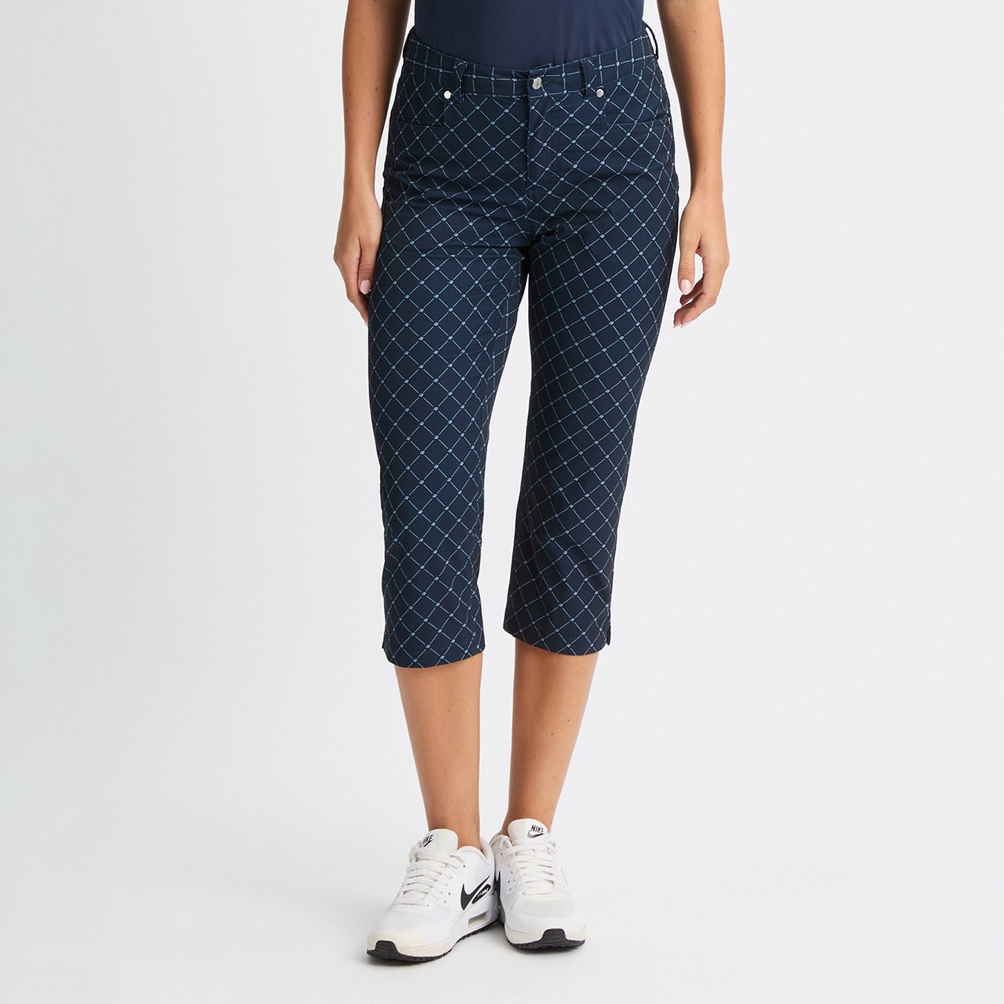 Rohnisch Ladies Lightweight Navy Golf Capris with Micro Logo Check Print