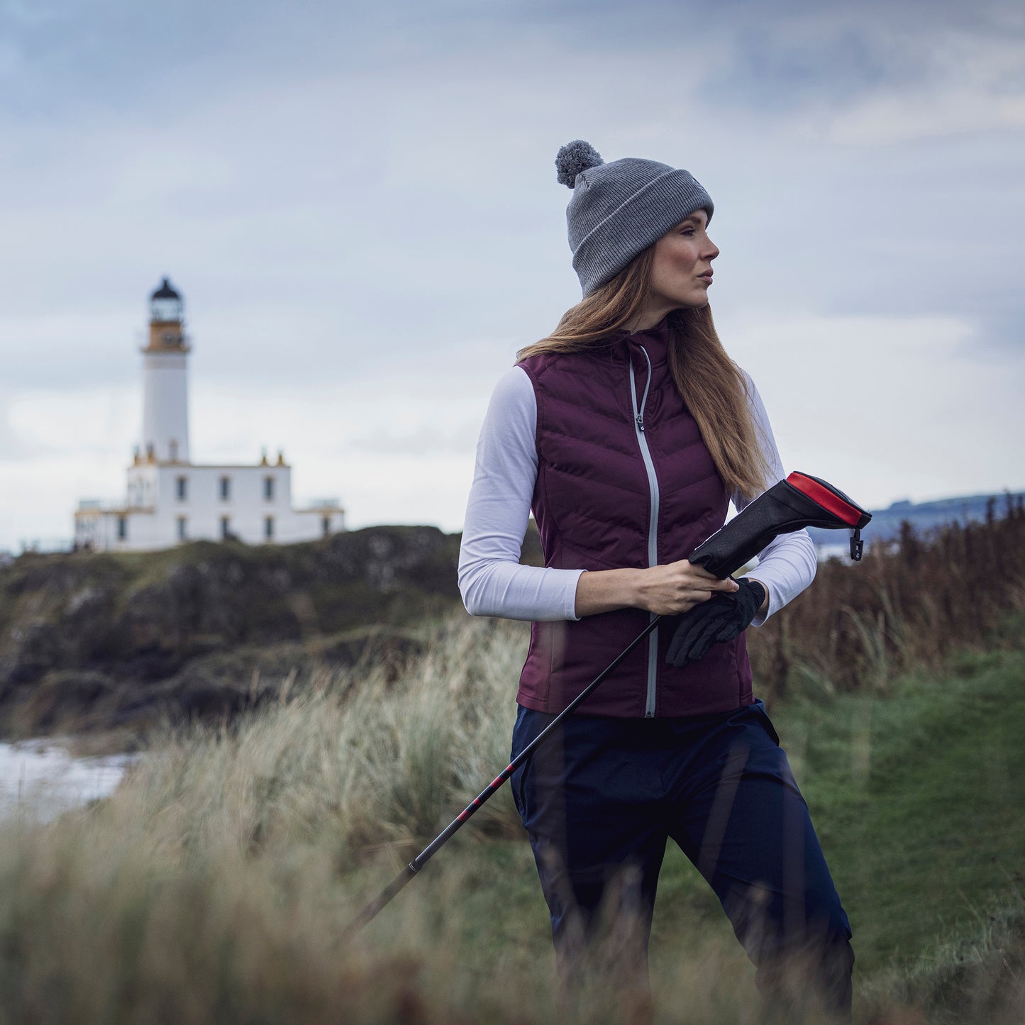 Stay on par this season with this superior gilet from Sunderland in beautiful, rich burgundy. Perfect for layering and year-round wear, this lightweight, wind-resistant, and breathable piece features thermal padded panels to the front and rear of the body for exceptional warmth and comfort, while the shaped, stretch side panels offer a flattering silhouette and enhanced mobility with every swing!