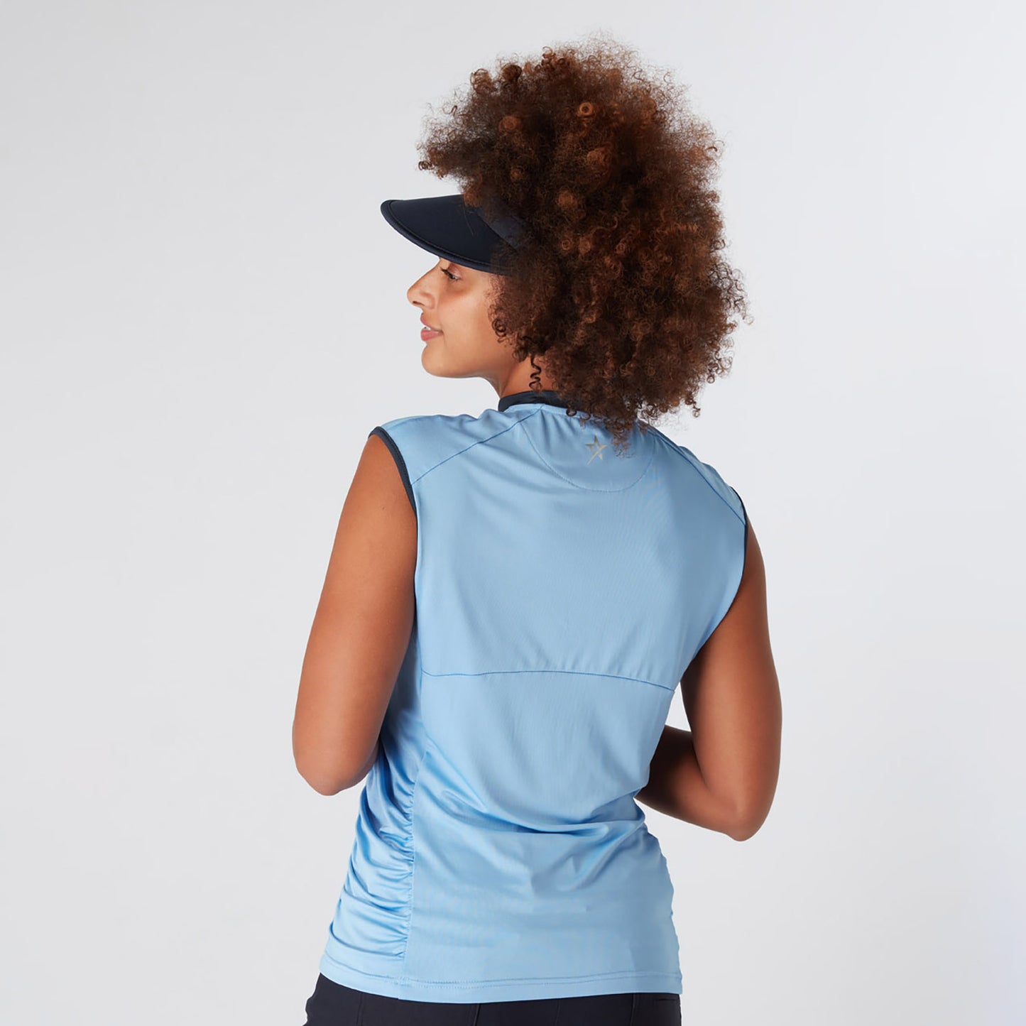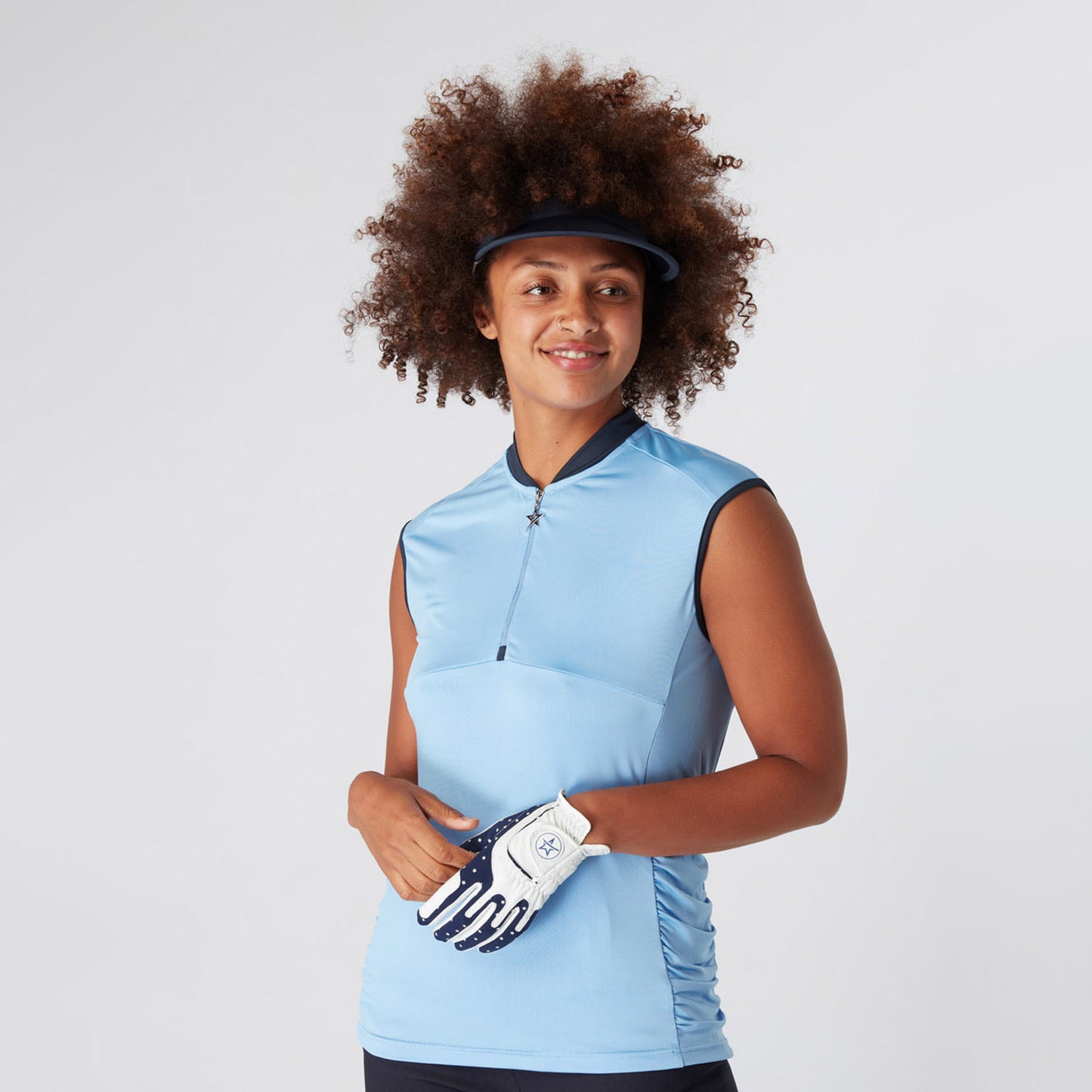 - "Christy" cap sleeve polo in 'Tranquil Blue'