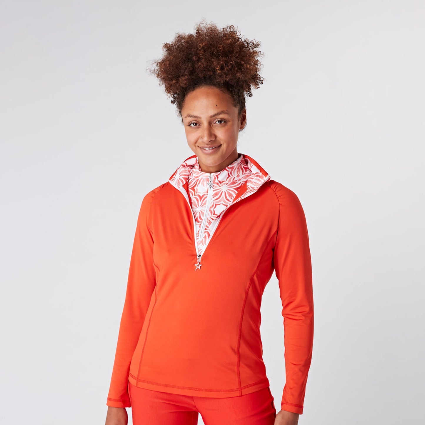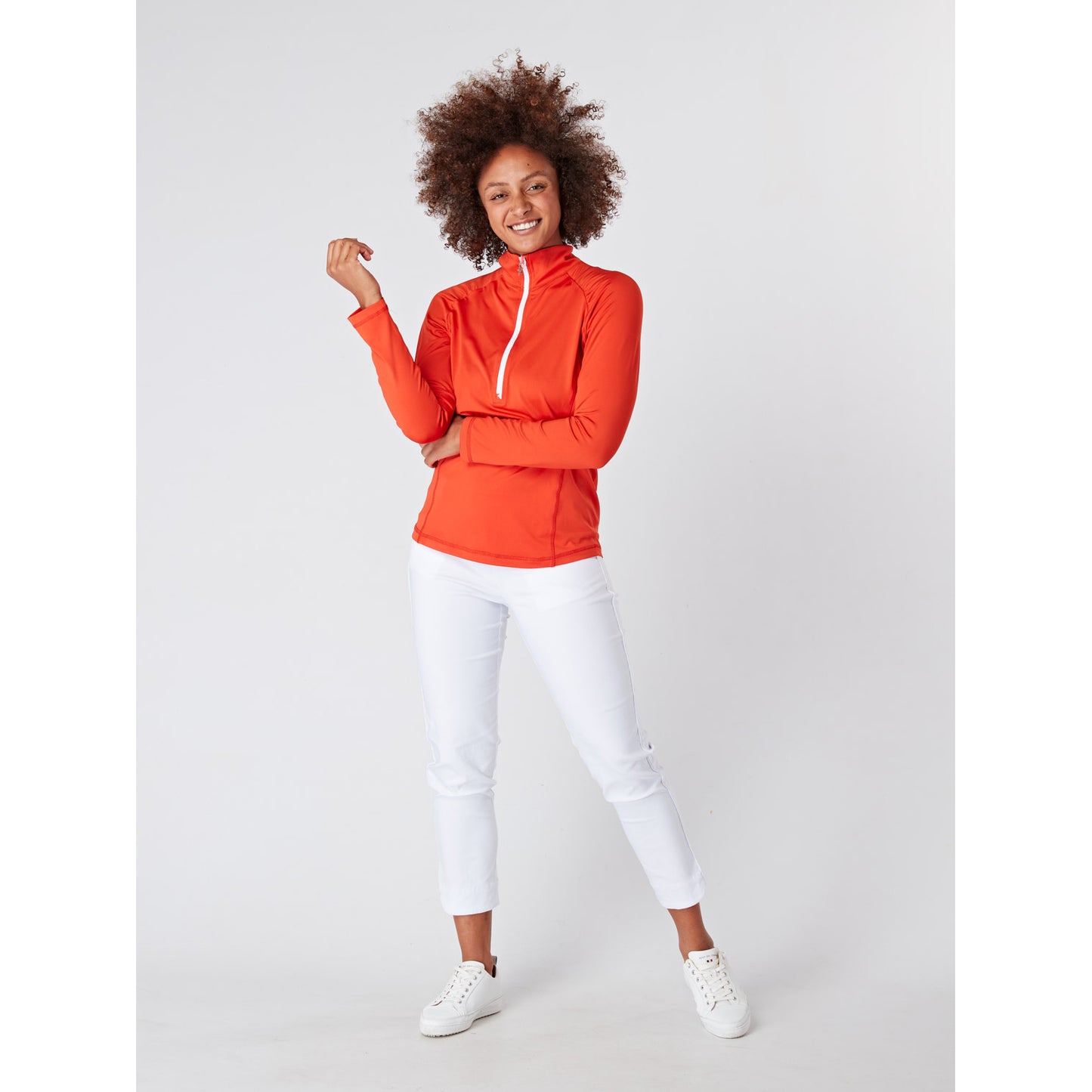- "Celeste" 1/4 zip top in 'Luscious Red'