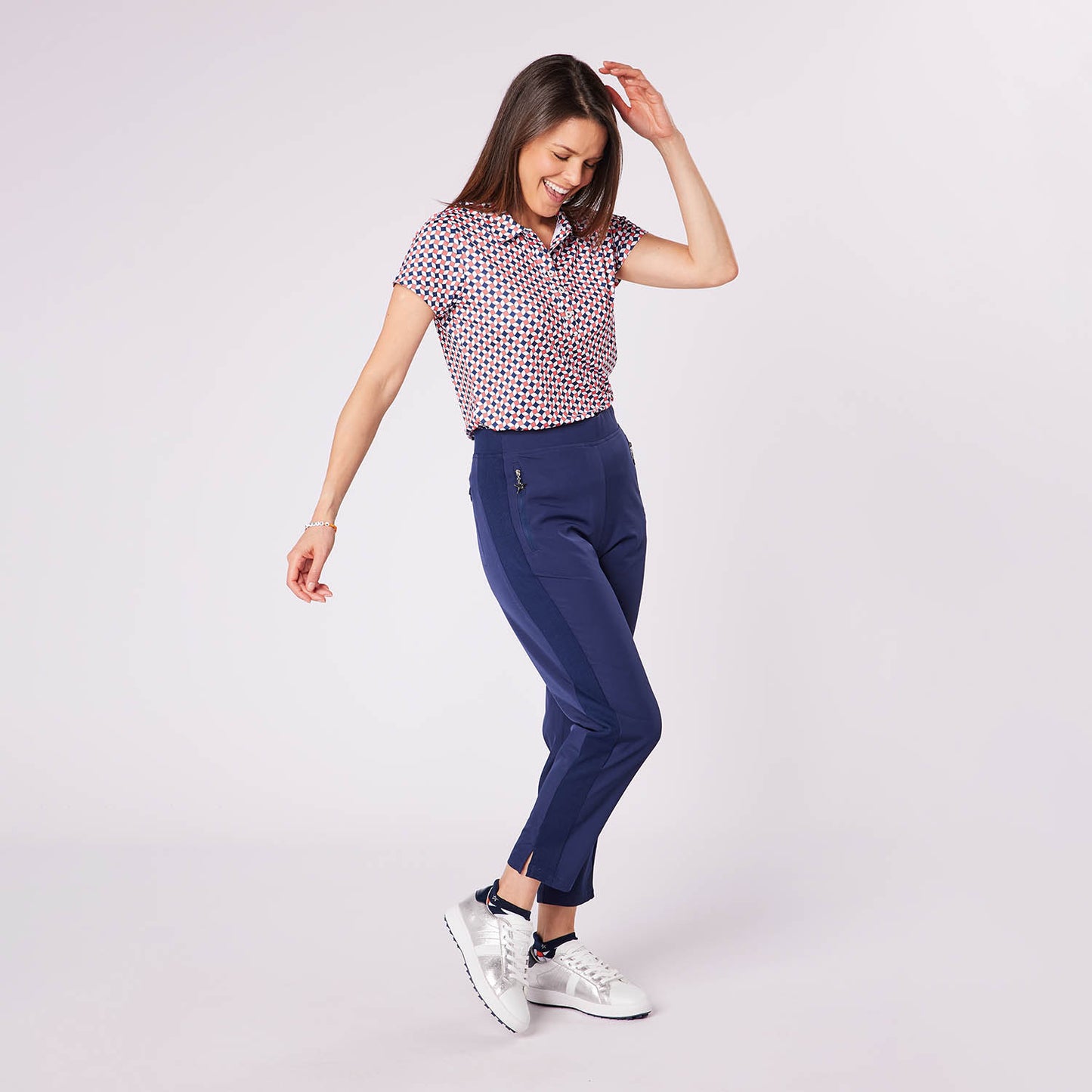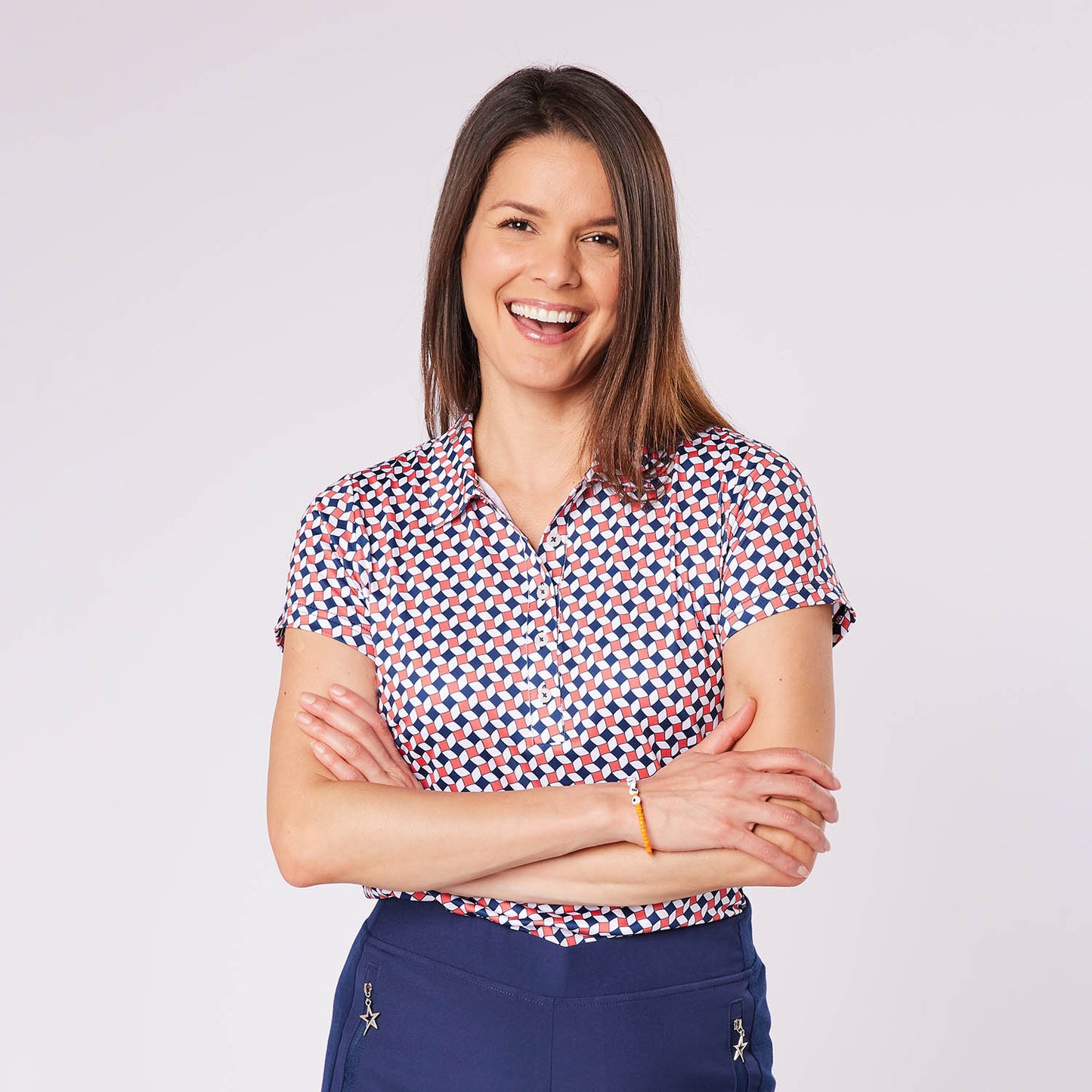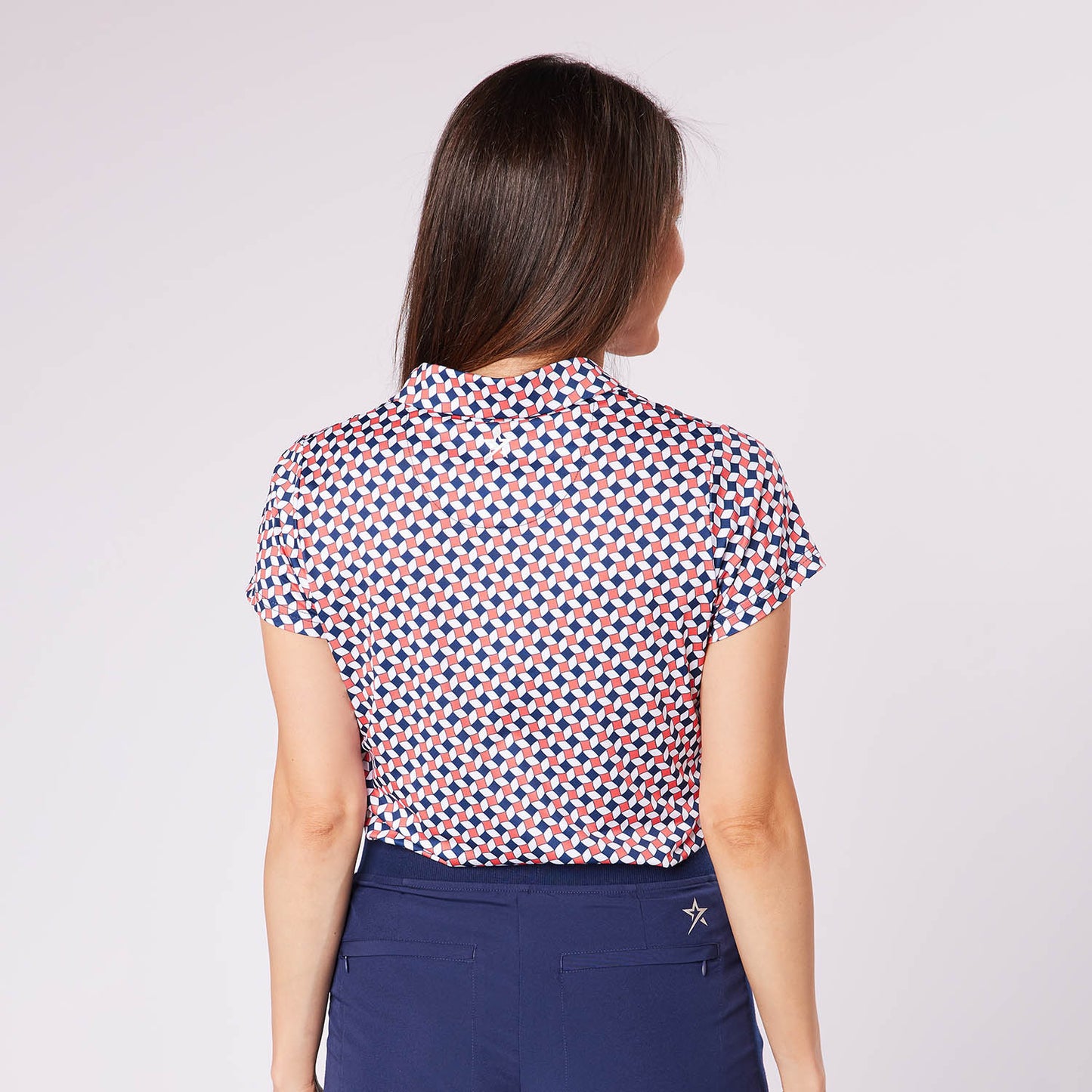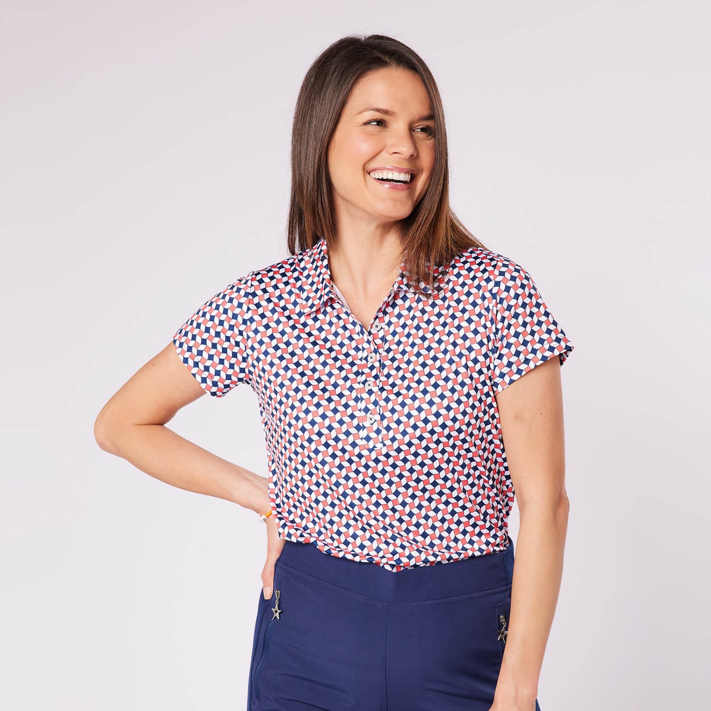 Swing Out Sister Ladies Geometric Tile Print Cap Sleeve Polo