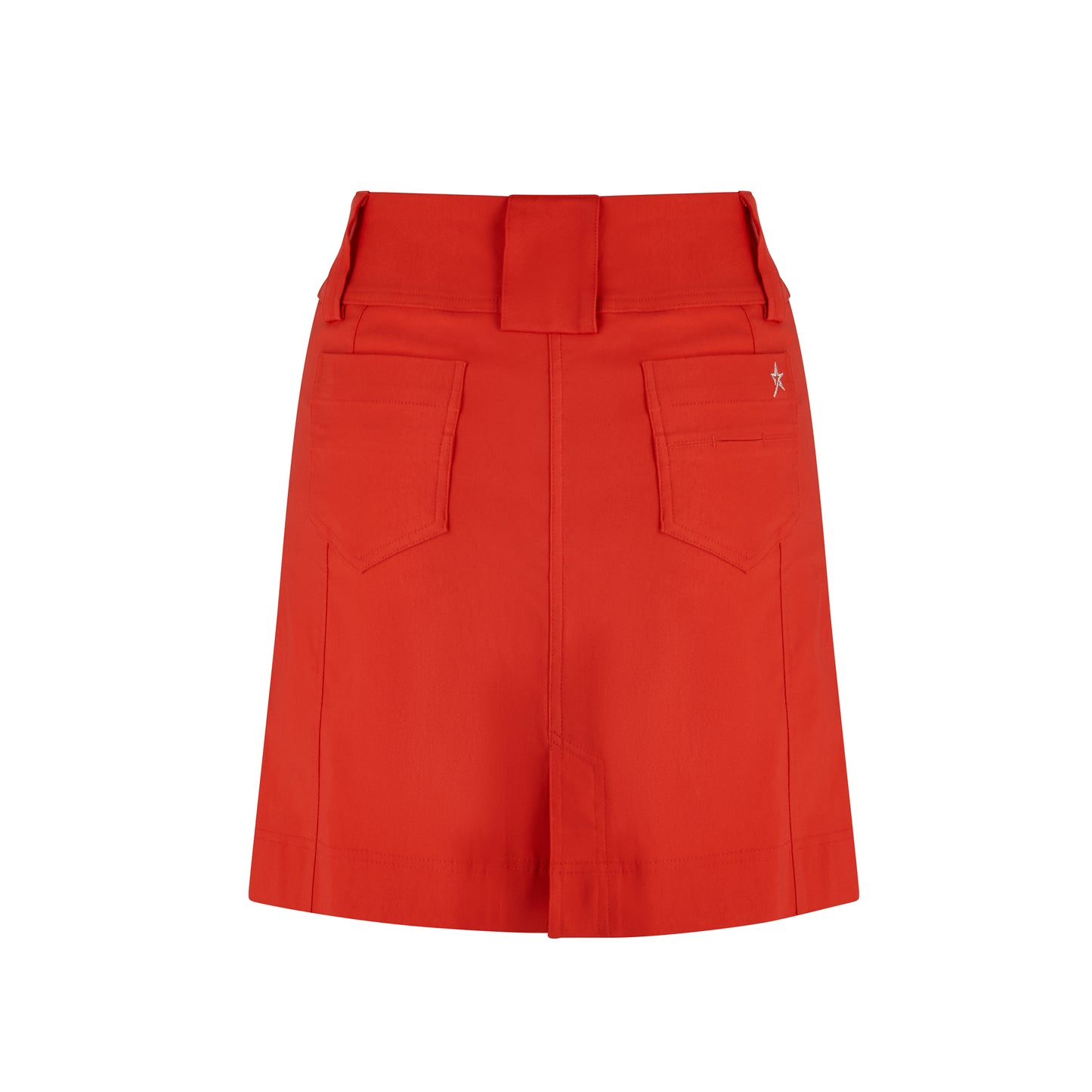 - "Stella" skort in "Luscious Red"; length from waist to hem approximately 18"/46cm