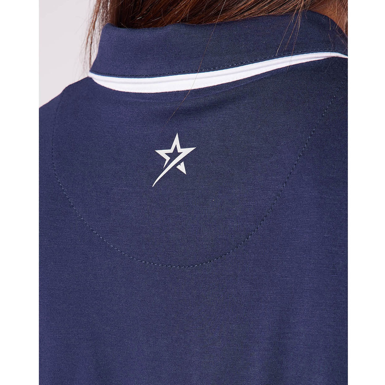 - Zip-neck and classic collar trimmed in white