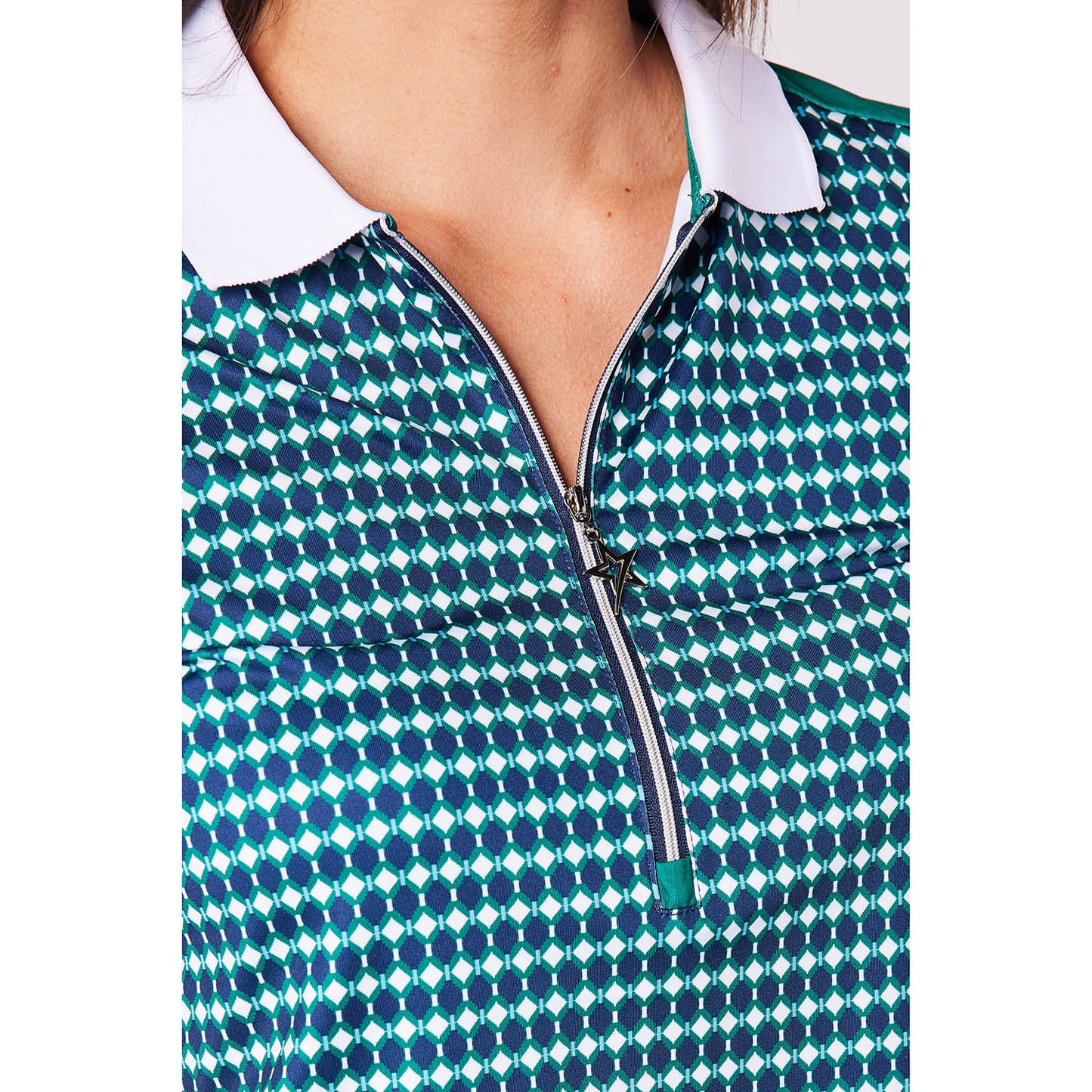 Swing Out Sister Zip-Neck Geo Print Cap Sleeve Polo
